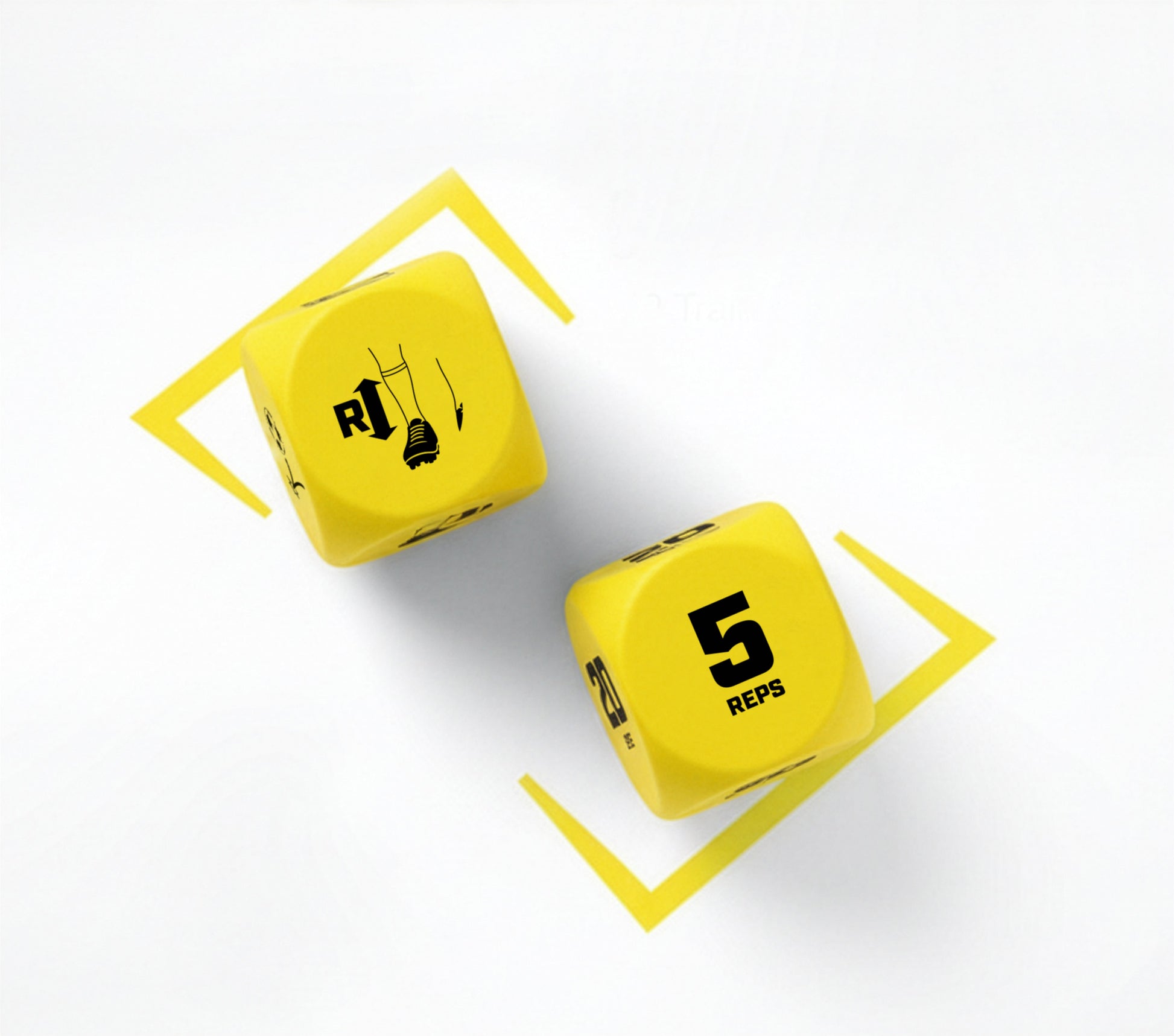 Two foam dice designed to generate randomized football juggling (keepy‑up) challenges. Each roll combines a skill prompt (e.g. left foot, knee combo) with a duration count or time limit, guiding players through diverse juggling routines. It’s designed to turn solo or group juggling into structured, playful training. This product is made to support progression from beginner to advanced levels.